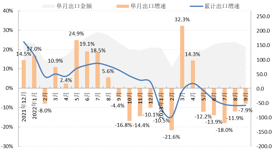 圖3 2023年1-9月服裝及衣著附件出口情況