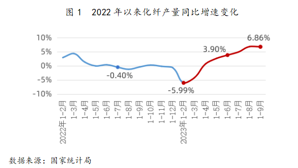 據國家統計局數據,2023年1-9月化纖產量為5230萬噸,同比增長6.86%,較去年同期增速提高7.18個百分點;w產量增速呈現逐步上升趨勢,1-9月增速較1-6月增速提高2.96個百分點。分省市看,1-9月浙江省化纖產量同比增長4.7%;江蘇省化纖產量同比增長19.6%;福建省化纖產量同比減少7.6%。