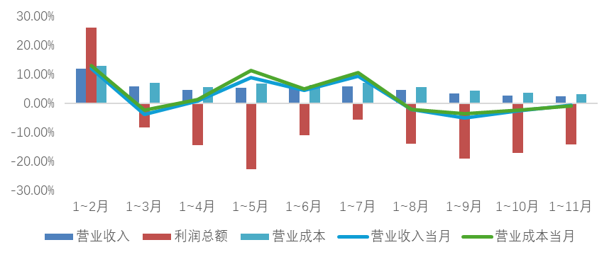 圖4. 2024年1-11月規模以上毛巾企業主要經濟指標走勢